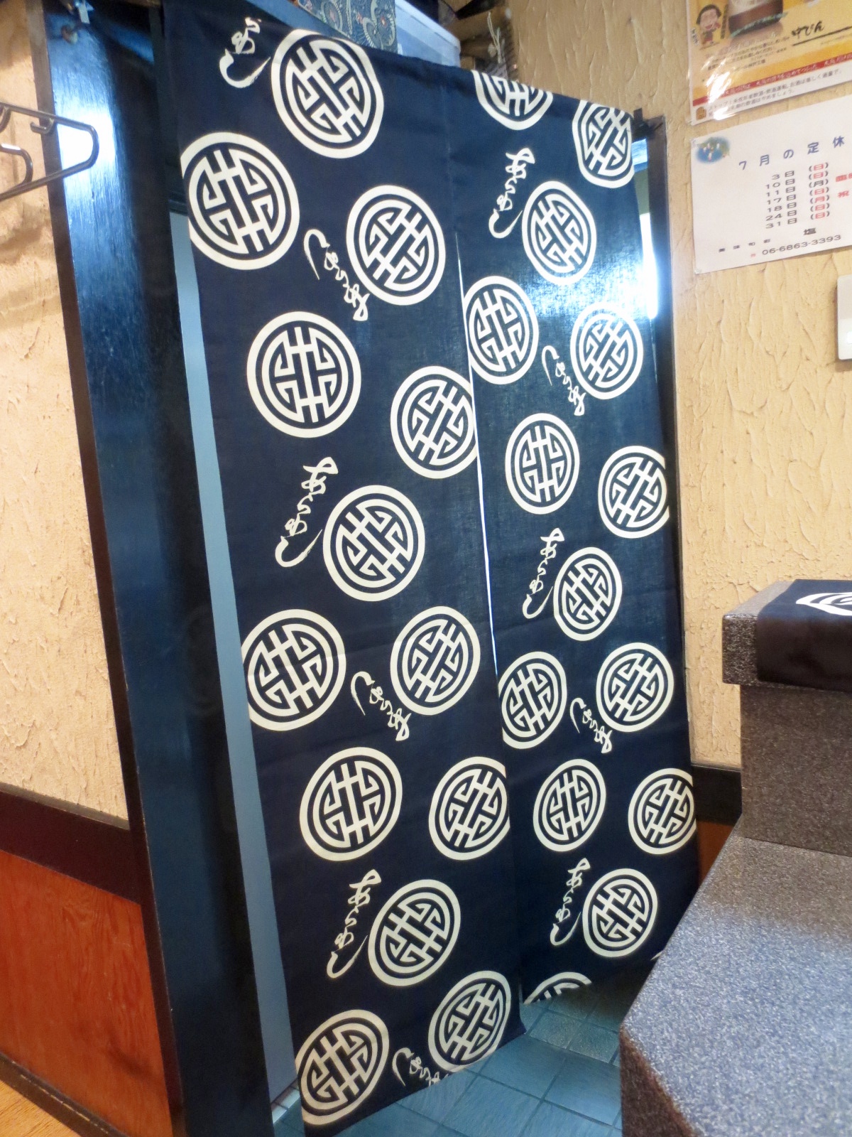 ちょうどいい幅で簡単にのれんが完成〜♪ 色と柄はなかなか良い感じ…….。お客様に好評です(^^)