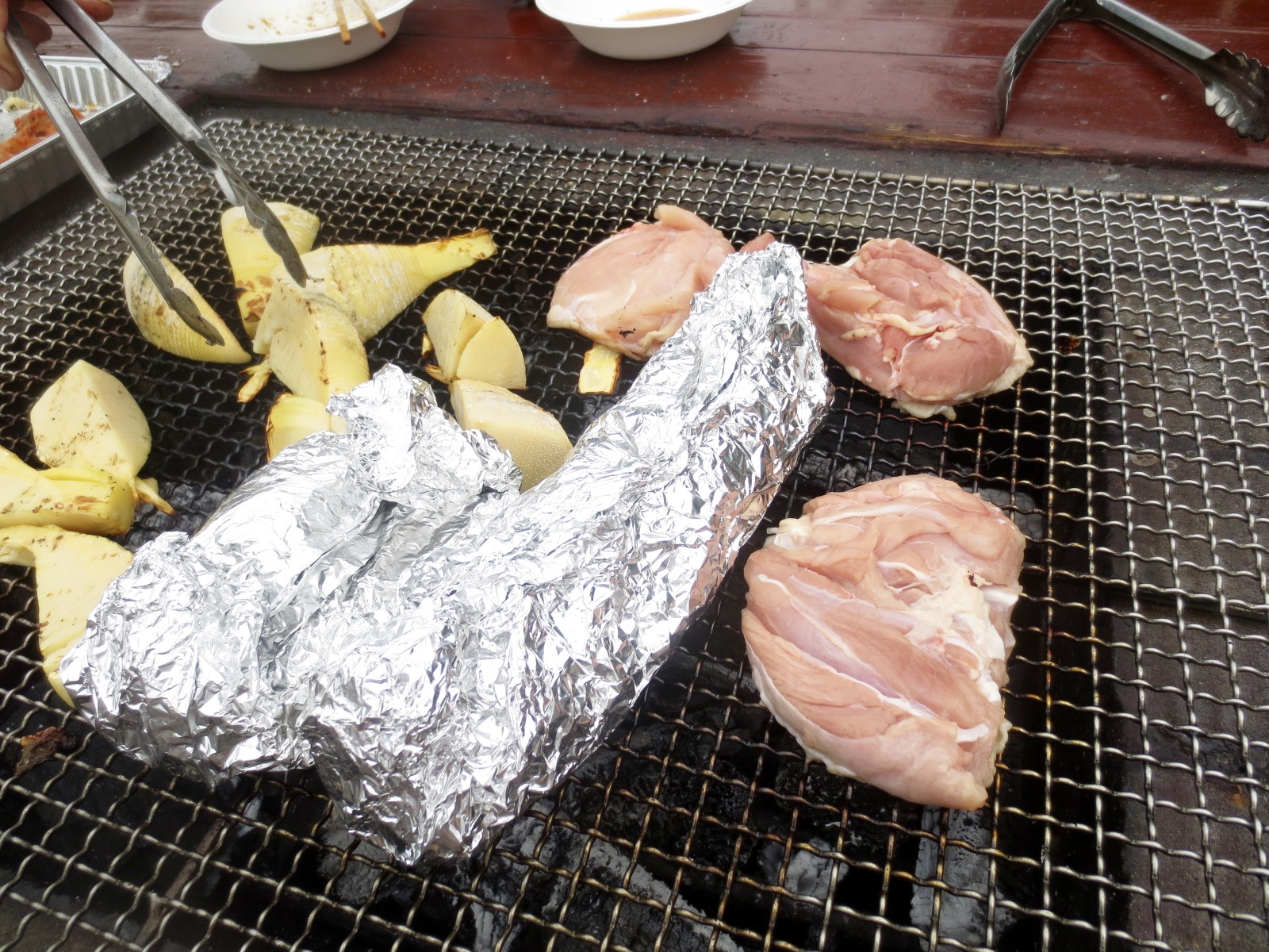 焼いているのは、5月に三田に遊びに行った時の『松風地とり』を塩焼に…….。